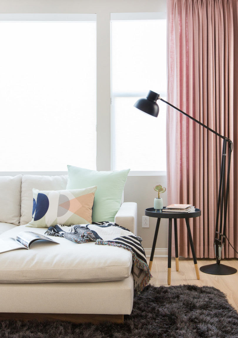 The end design turned out to be more pastel-ly (millennial pink, anyone?) and Scandinavian than I had expected, which is why I like that we balanced that Scandinavian color palette and clean lines with the graphic black and white stripes, the modern chandelier, and the farmhouse table. My taste is very eclectic and so it was important to me to not stick to any specific textbook aesthetic…the space really needed to reflect my personality. Working with Emily’s team was awesome – they were super flexible and put up with my pickiness and fickle attitude. It feels… airy and fresh.